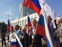В шествии и митинге приняли участие несколько десятков человек – защитники Белого дома, активисты и политики. На пересечении Нового Арбата и Садового кольца у памятной стелы "Защитникам демократии в России" участники акции ровно в полдень подняли российский флаг и вспомнили историю праздника, которая тесно связана с событиями 25-летней давности.